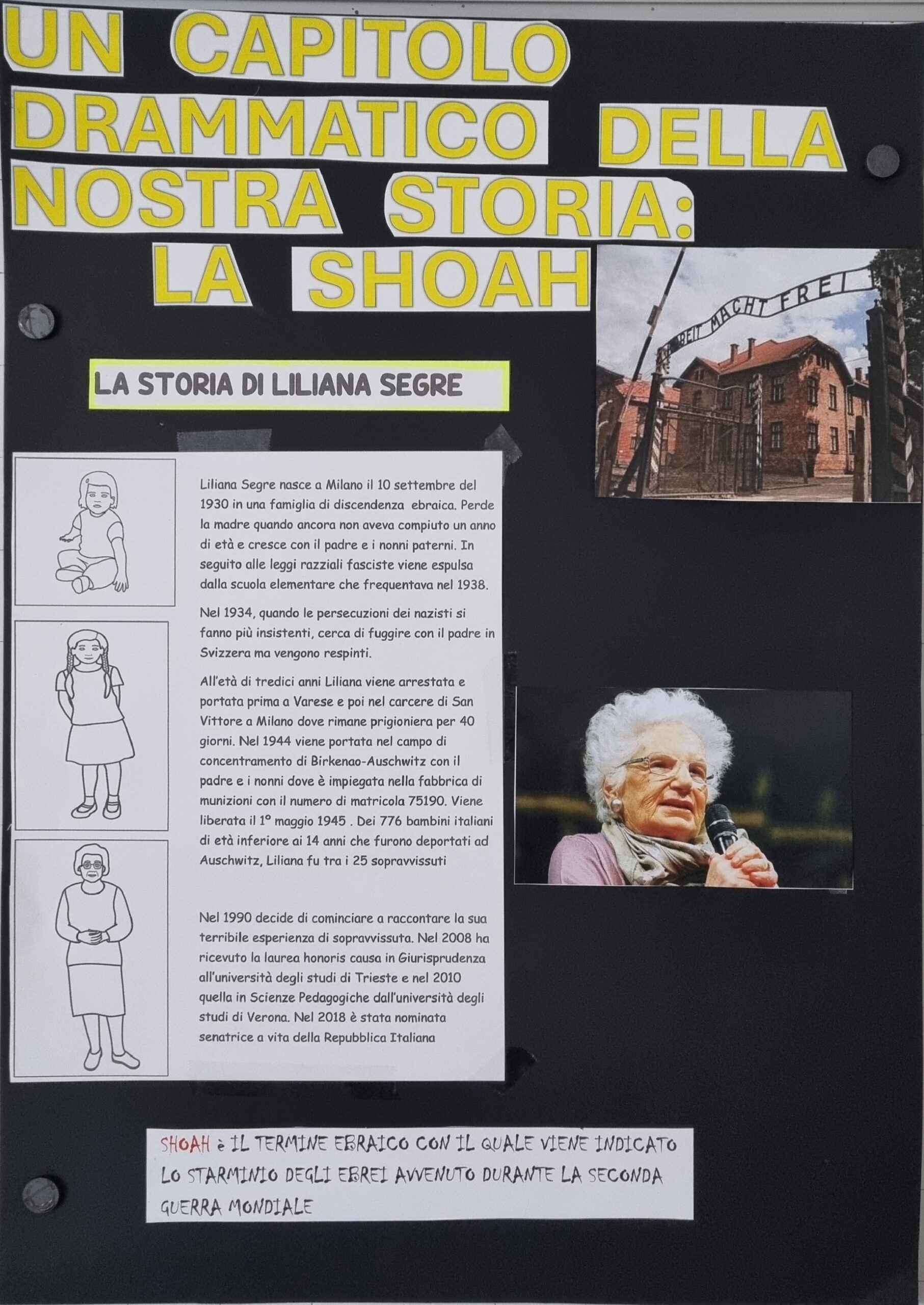 La Shoah (termine ebraico che indica lo sterminio degli ebrei) ebbe origine con le prime discriminazioni nei confronti del popolo ebraico, subito dopo l’ascesa al potere di Hitler. Le politiche naziste, inizialmente mirate a risollevare l’economia tedesca dalla crisi seguita alla Prima guerra mondiale si orientarono progressivamente verso la persecuzione sistematica degli ebrei ma anche omosessuali, rom, disabili. A queste categorie di persone venne vietato l’accesso a determinati negozi, l’utilizzo di servizi essenziali come scuole e mezzi di trasporto, e persino il diritto al lavoro. A breve iniziò la costruzione di campi di concentramento o lager, luoghi di reclusione nati per la detenzione di prigionieri abili al lavoro.